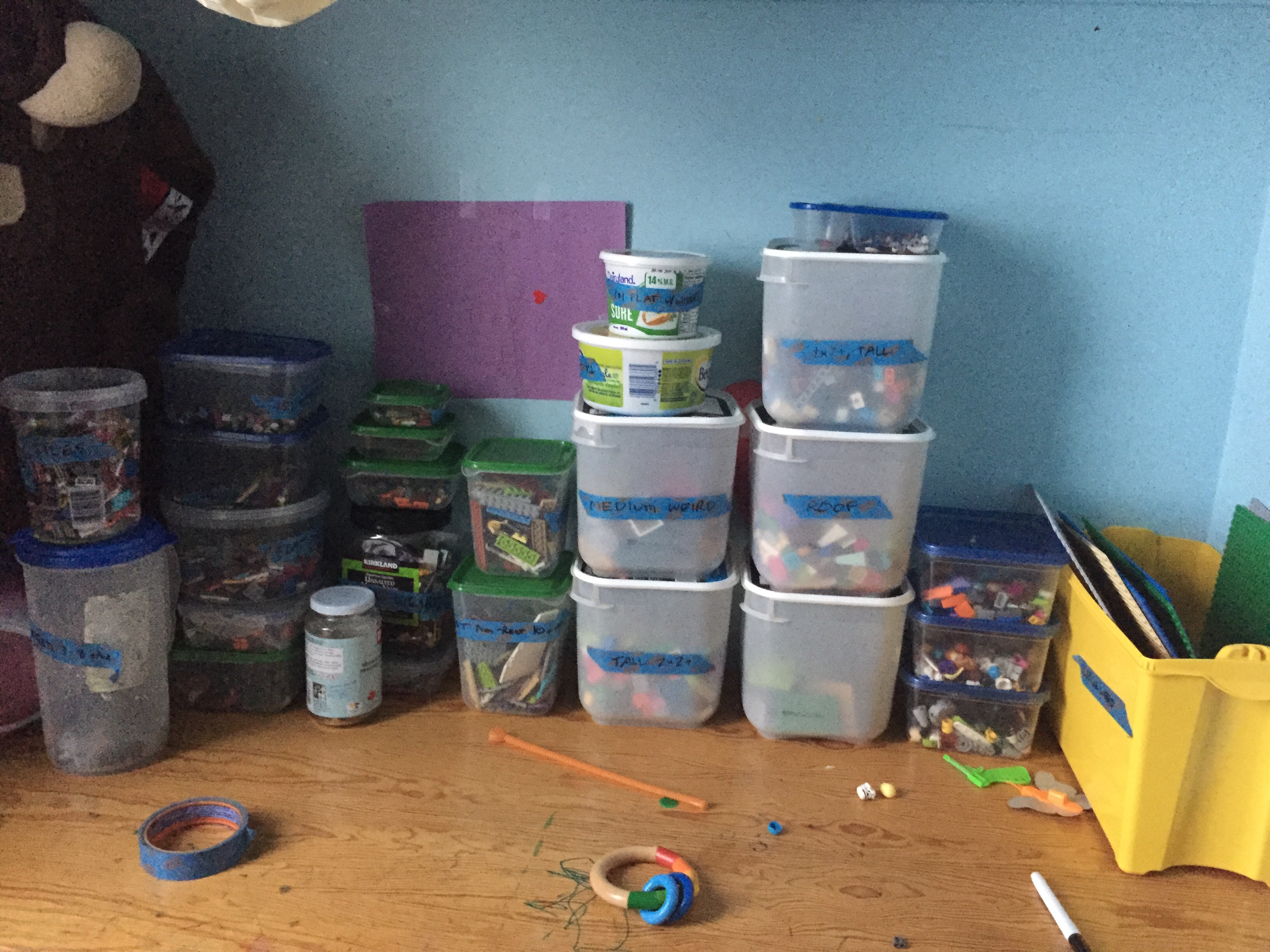 Yesterday Dooner and I went to the local hardware store and found a couple nice containers to finish the job. There’s still some refining to do, but we’re getting there. The kids are getting into it too. My goal is to get them sorted enough that to it’s actually fun to build from instructions.
