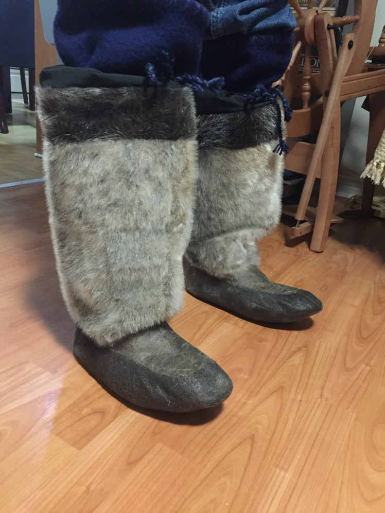 I put Jared’s kamiik at the top of my priority list last year, and that paid off. I’m very proud of how this pair turned out. As my fourth pair, they benefited from the many trials and errors I had with the other three sets. He’s worn them a good bit, though they need a stretch right now.