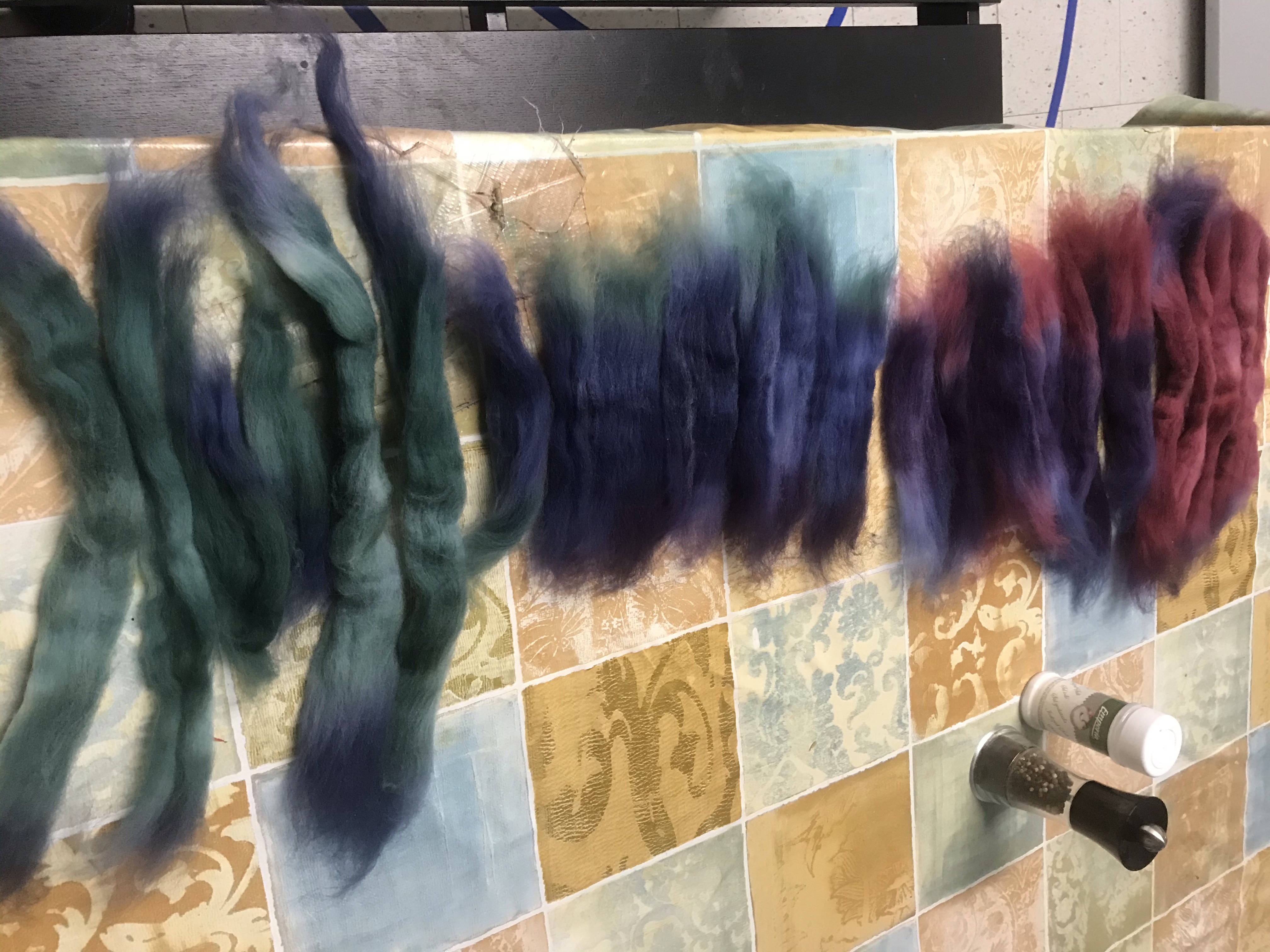 I arranged the chunks in gradient order as best I could, but each chunk started and ended with a contrast colour. This added a lovely bit of heathering and interest to the final gradient.