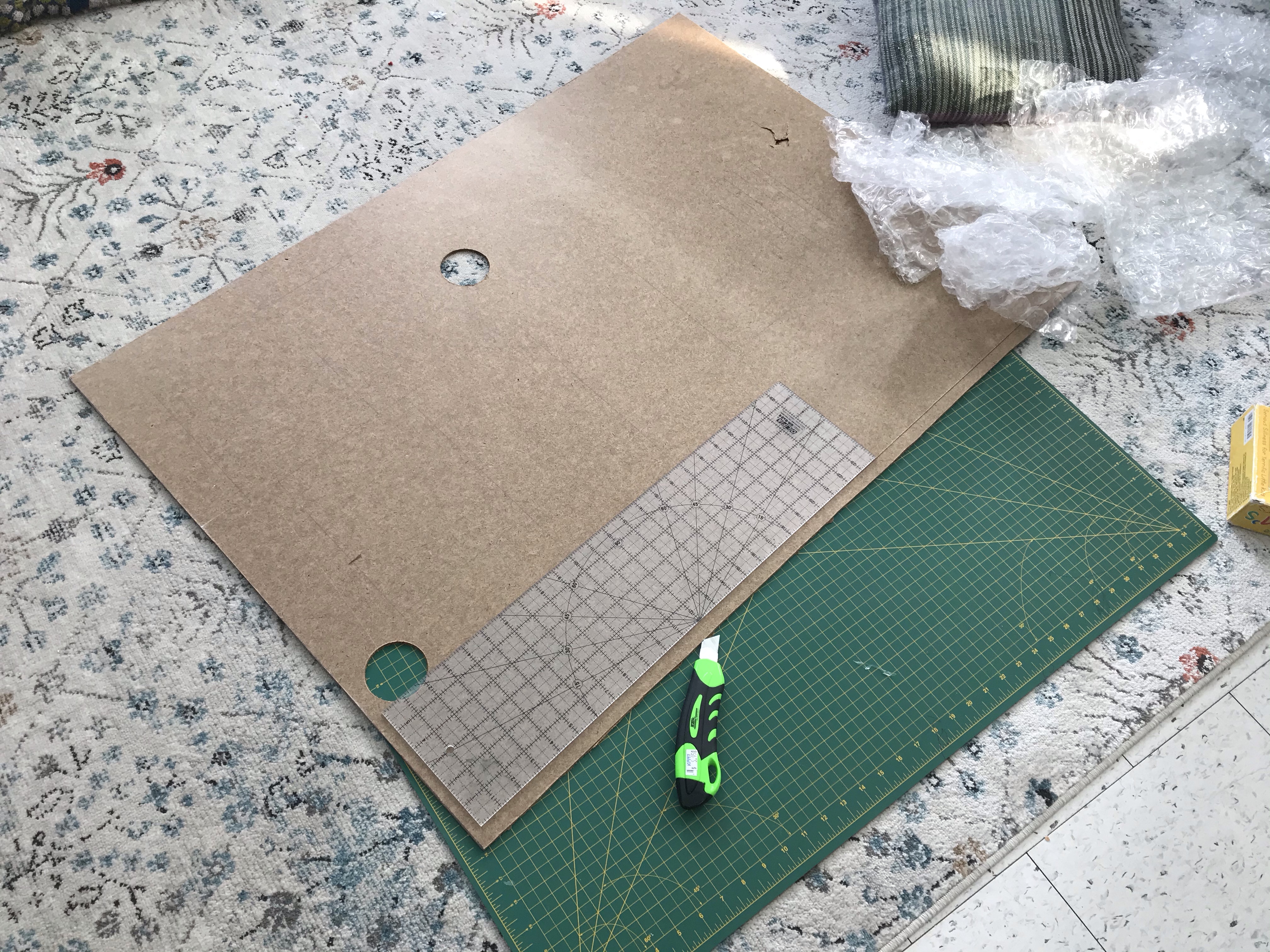 Husband surprised me by returning from his emergency hardware store trip with an awl for punching holes. Then there was sewing, glueing…