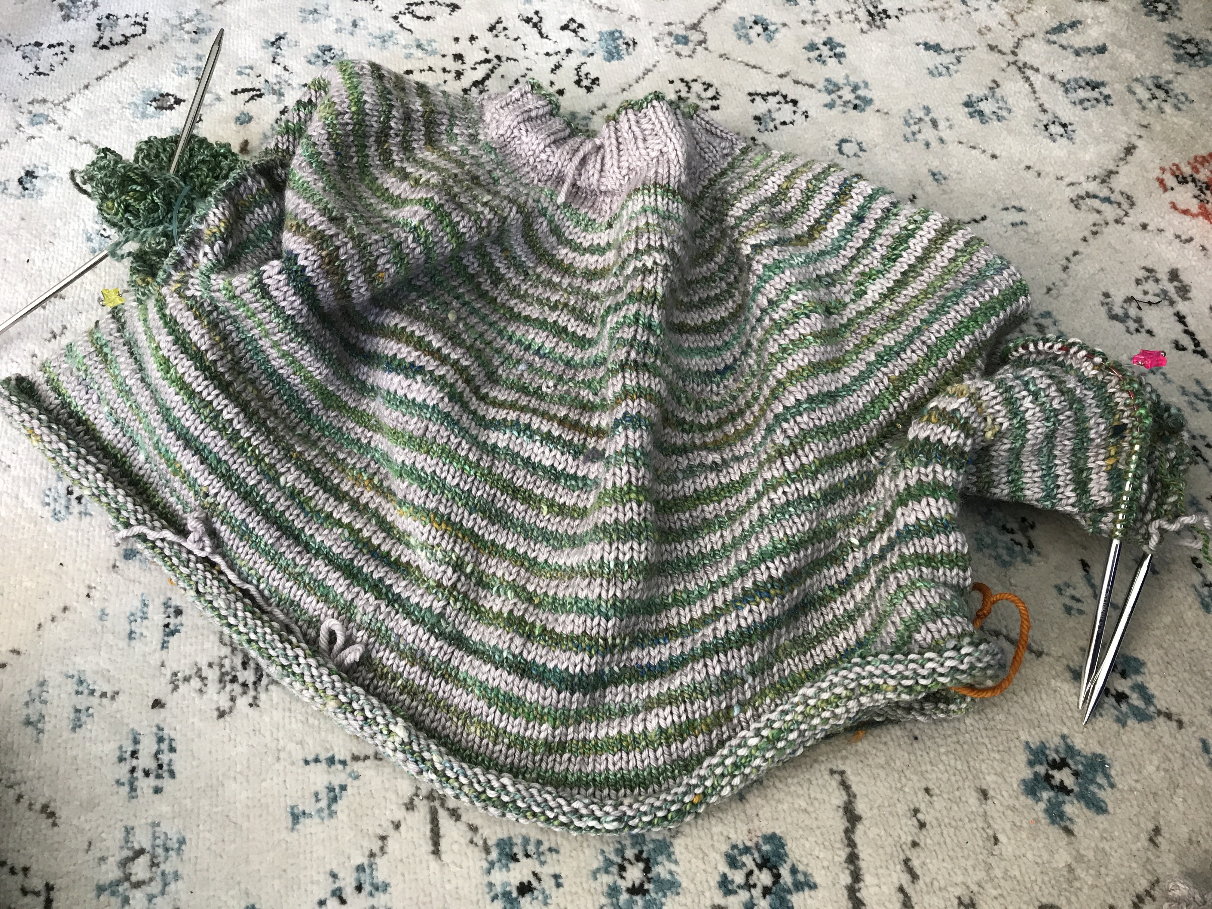 I’ve worked on a swatch and a hat I can’t show you, but mostly I’ve plugged away on my Ringle. Not that you can really tell.