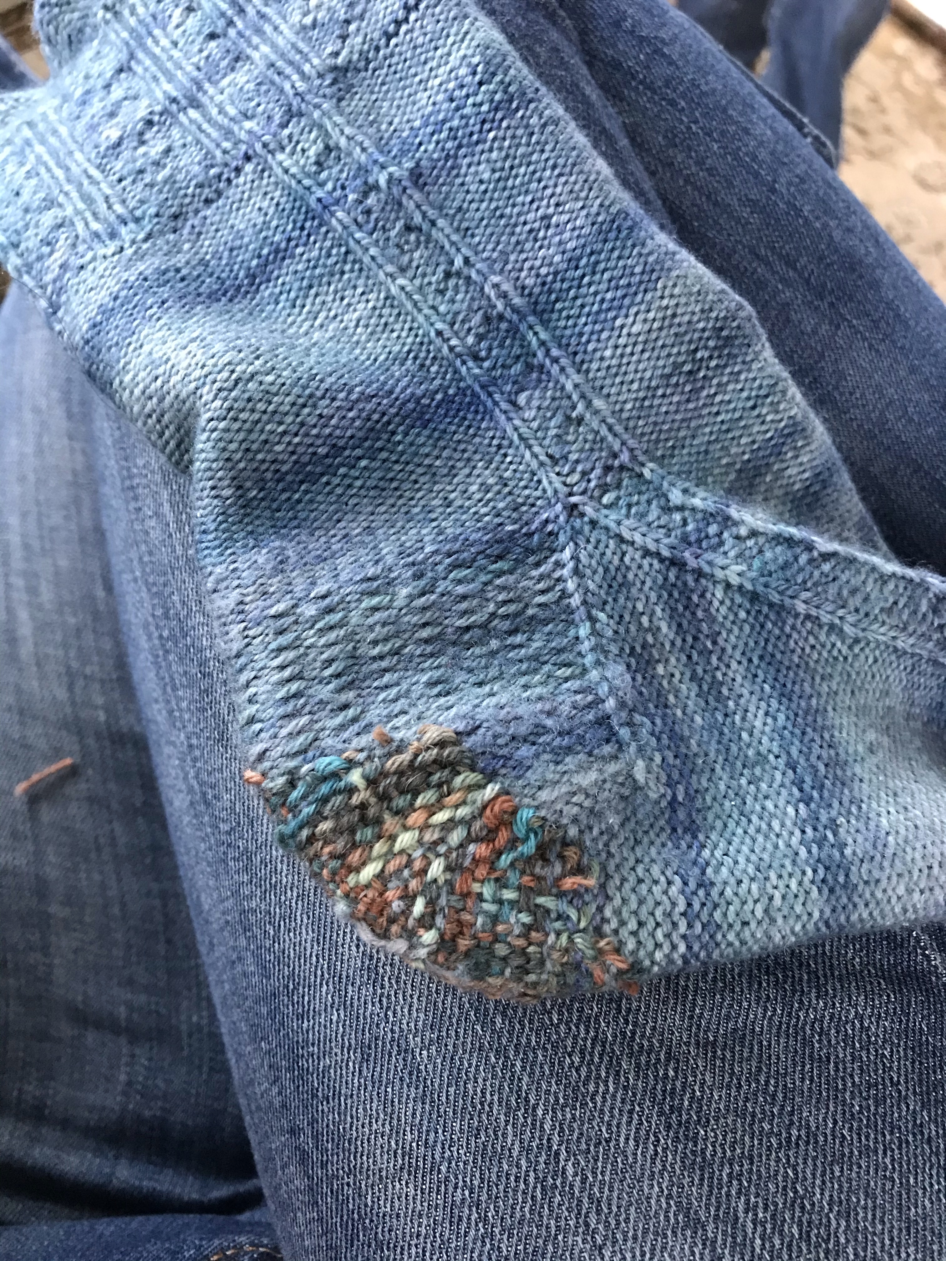 Finishing the knitting was easy; forcing myself not to start more knitting was difficult. But my repair pile was getting out of control, and old projects were piling up of various kinds. I was feeling overwhelmed. They all seemed to involve needle and thread, one way or another, so I got stitching.