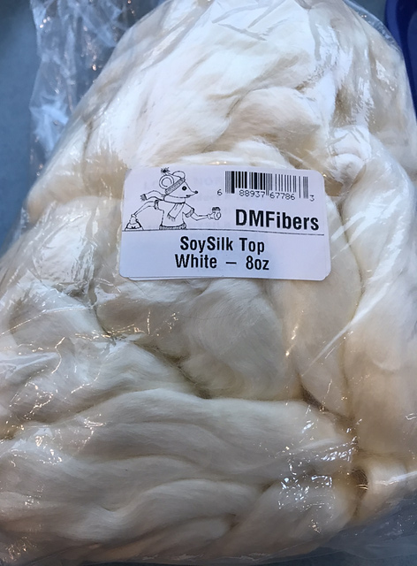 After years of thinking that “seacell” and “rose fiber” must be something novel and super-green, I was a little disappointed when I figured out (years back) that it was just a sub for wood pulp. So I was not expecting to like this fiber. I bought Soyasilk from Vegan Yarns, and did not expect to enjoy spinning it on its own.