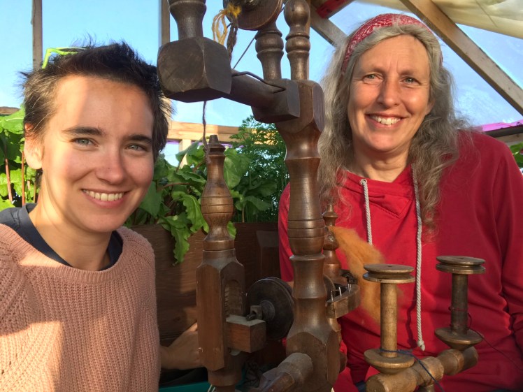 Also life-giving: we’ve spent a few of our spinning evenings in her greenhouse. I cannot tell you how epically cool it is to spend an evening of spinning surrounded by greens, and be sent home with tomorrow’s fresh-picked salad. Now it’s too dark in the evening to spin out there. But it was sure a precious time.