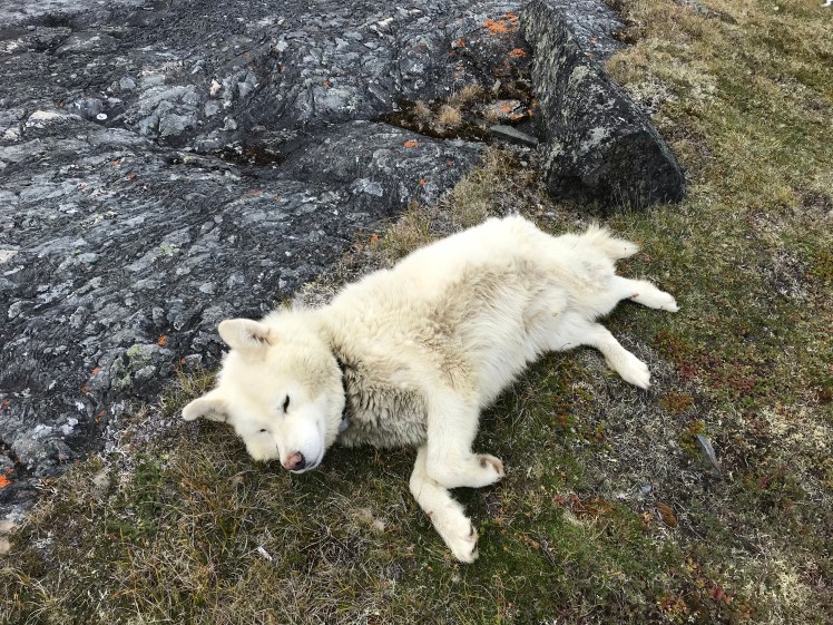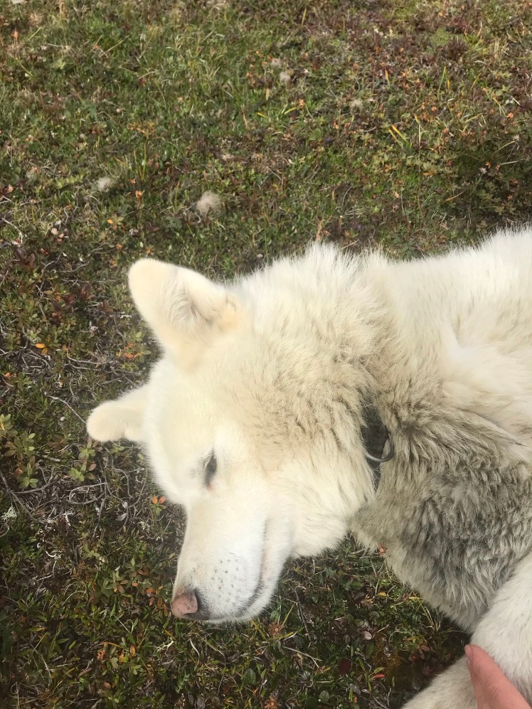 He’s strong, but just about the sweetest thing I have ever met. He loves attention and belly rubs. We went out to our friend’s cabin for one afternoon while he was with us, and he got so much joy running over the tundra. When he was bored he would come find me and lie on top of the blueberry patch I was picking, waiting for belly rubs. He’s officially ruined me for dog ownership – I can’t imagine a dog sweeter than he is!