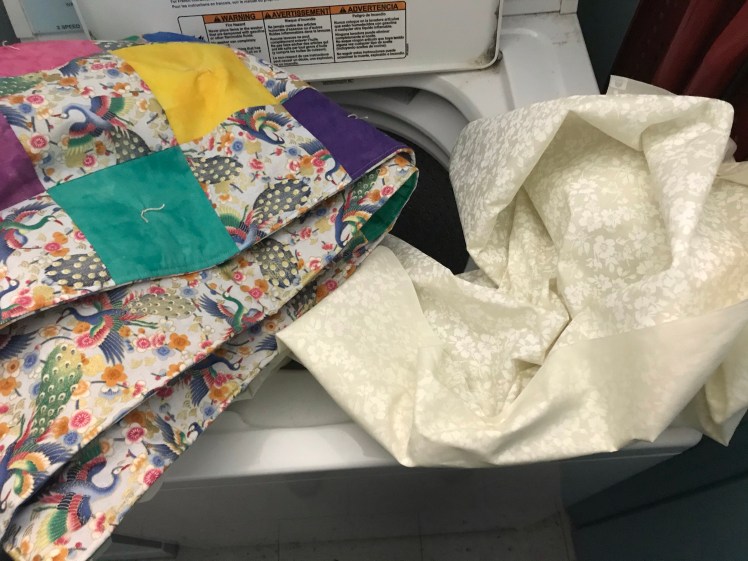 You know things are serious when the finished quilt goes for its final bath along with an initial wash for fabric for the next quilt. Look out.
