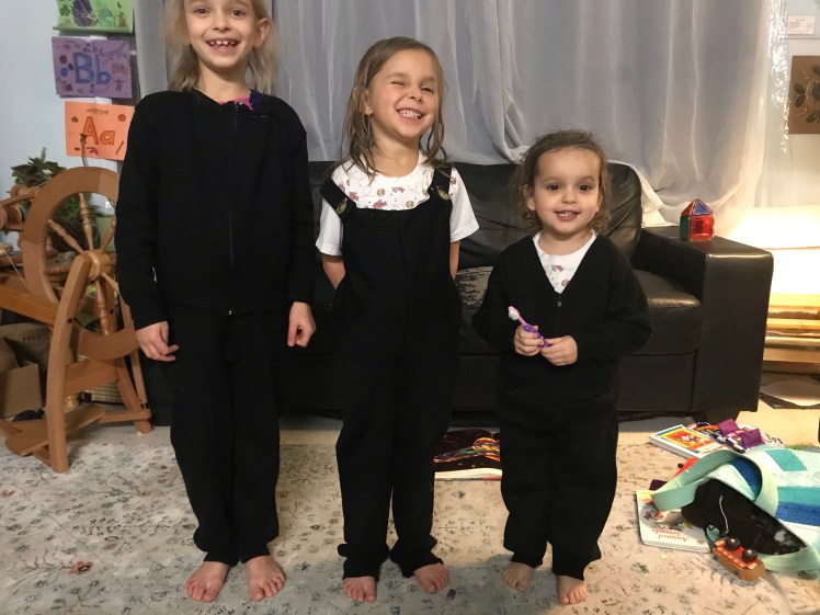 They are already seeing use. Dooner wore hers under her rabbit-fur parka, sot it’s now covered in rabbit fur. It’s so important to see my little ones well warmed when we go out in the cold, and so difficult to ensure I am doing so when I don’t have that lifetime of experience, and the kiddo is still learning to communicate!
