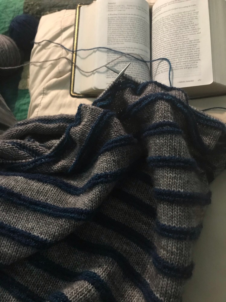 I did some short rows, and now am just waiting for myself to make the time to do the bit of colorwork I wanted to add before the ribbing. I wanted to finish this before the end of the year, but you know what? It’s ok. I’m cruising along slowly on my extended Strodie as well.