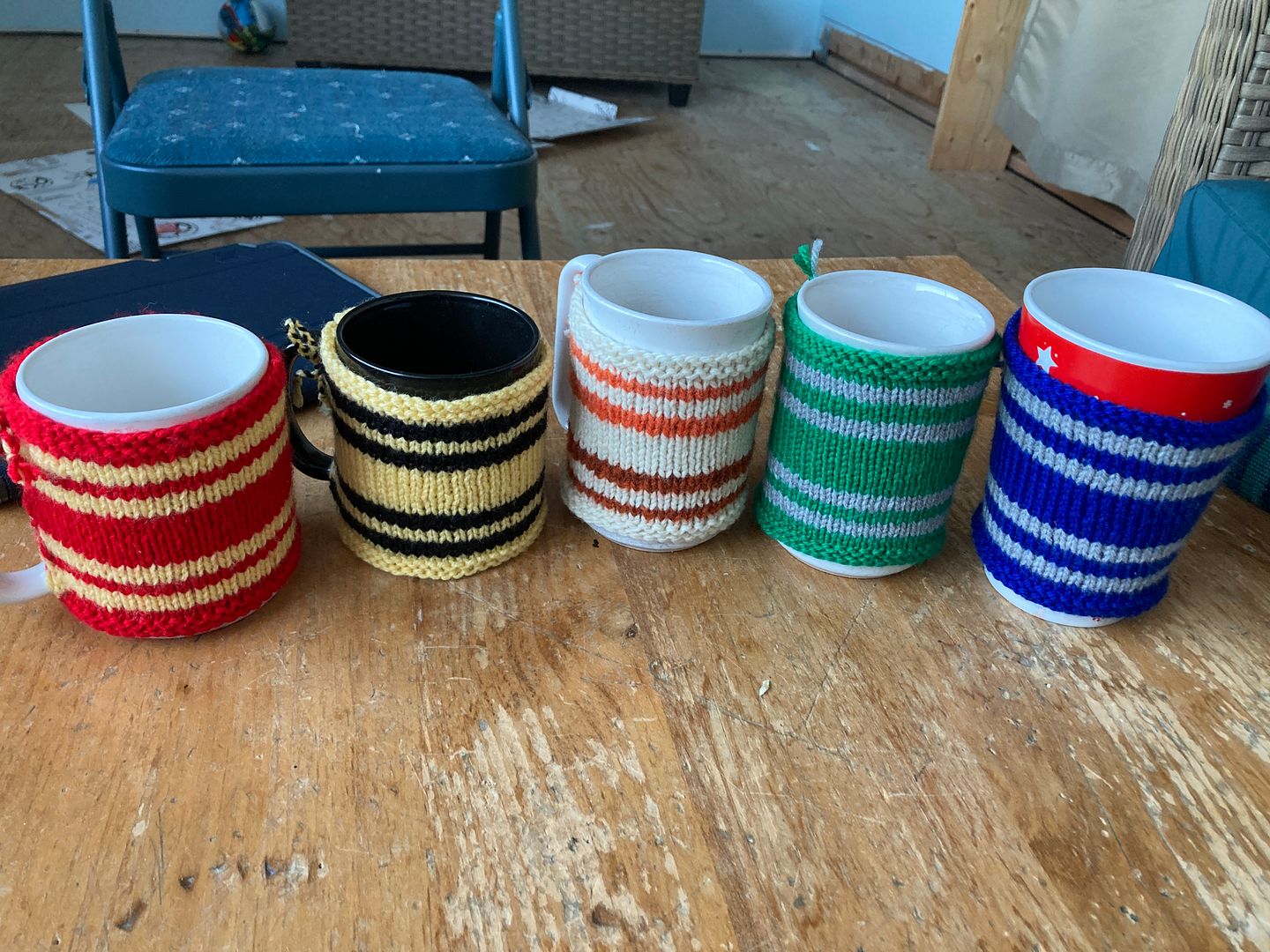I’ve posted before about how MiniMighty and I made these little mug warmers together. By “made them together” I mean that I knitted them, and she contributed maybe twenty stitches total to each one. I didn’t care; I didn’t push her. I was just thrilled that she was interested at all.