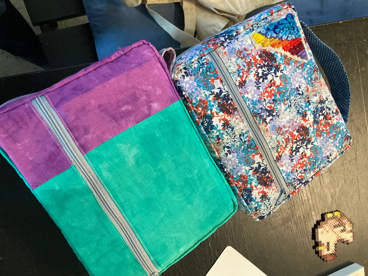 One more bit of sewing happened this month, and that was to make Bible covers for the girls. While I was in Calgary, Jared got them reading their Bibles every evening. Pretty special, eh? So I found a tutorial that would work for us, they designed the colours using entirely stash fabrics and a roll of zipper I had lying around, and I made them. (Dooner’s is not pictured as I made it a bit later.)