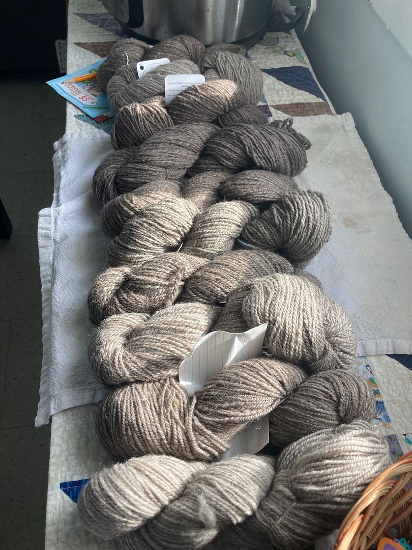 If you’re curious, the five wools here were Rambouillet, Targhee, Tunis, Cheviot, and Romney. The previous batch had Cormo, Icelandic Thel, and BFL. Each wool has a skein done with 50/50 qiviut, and 75/25 wool/qiviut.