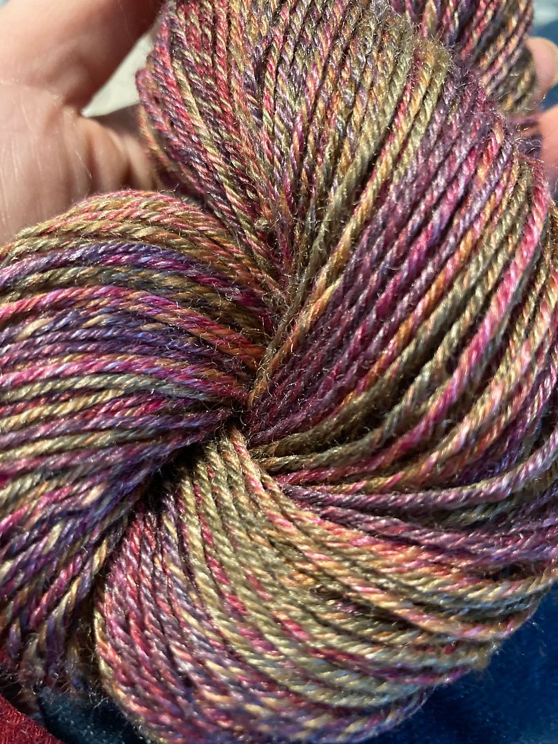 This month, I spun the first of these, a traditional 4-ply from the colourway “Tapestry” from Sweet Georgia Yarns.
