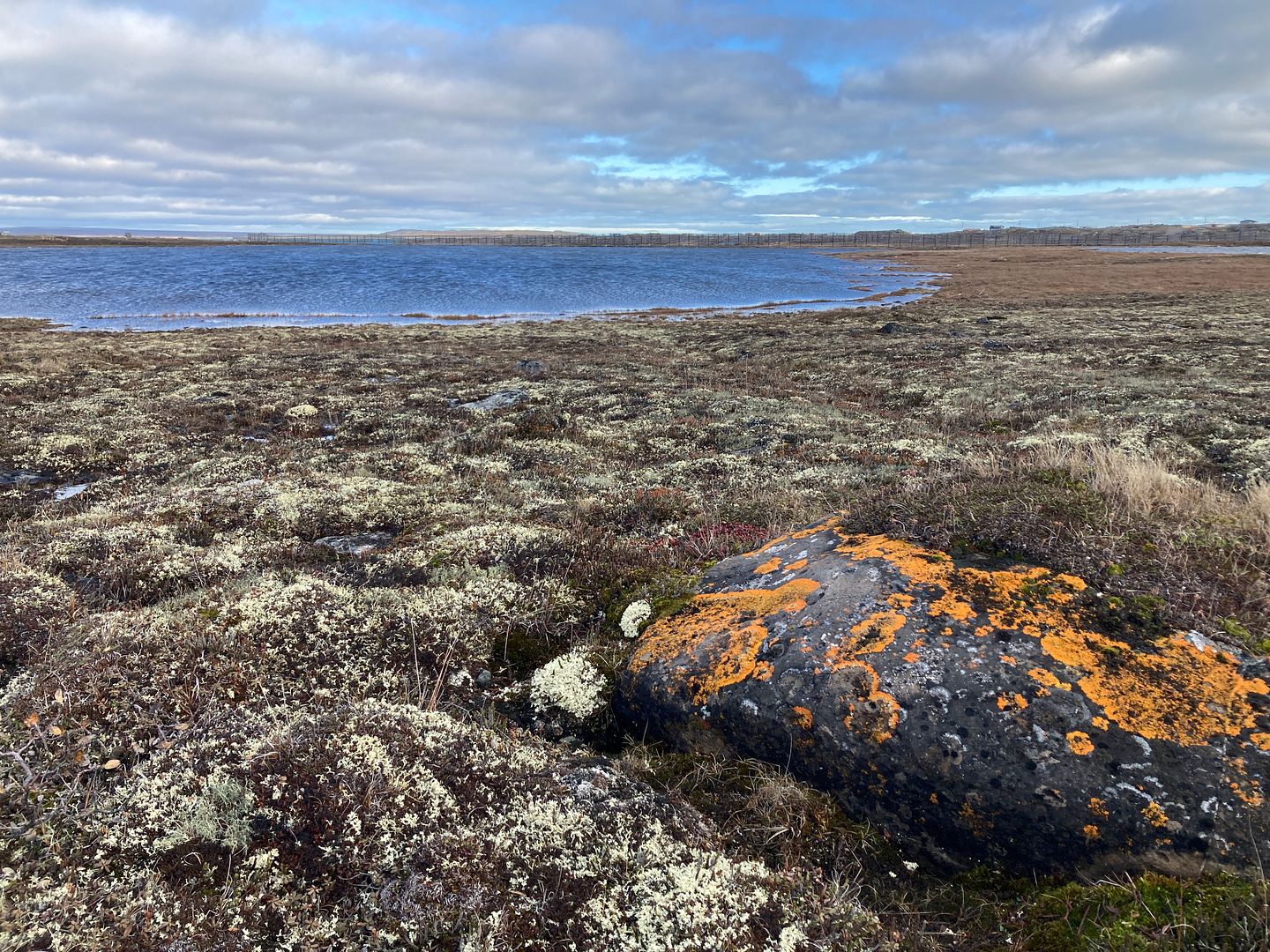 The day I finished these singles was one of the rare days this September that it wasn’t raining. The dogs and I went on a walk, and I realized that these colours that had seemed so odd in the braid were a pretty close representation of fall tundra colours. The chestnut brown looked like jewel lichen, the pale sage looked like the reindeer lichen, the mint was in the sky, and the greys are in the rocks and (on overcast days) in the water.