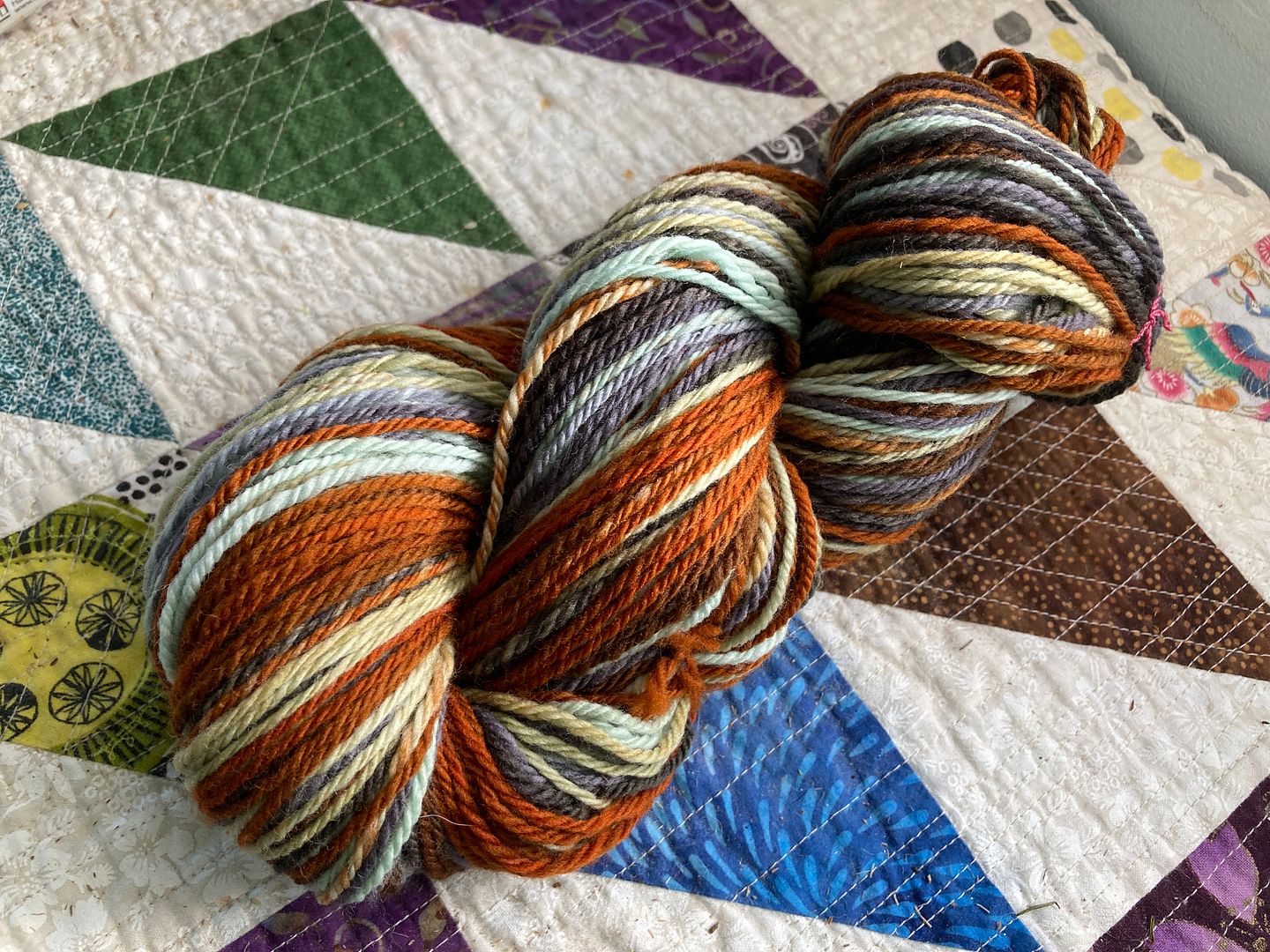 The second sock spin, following along with the ply structure work we’re doing at Wool n’ Spinning, will be a Hawser yarn. This is a Craftyjaks colourway called “Graffiti,” originally developed for a WnS breed and colour study that I did not participate in, so I’m pretty stoked to finally spin this colourway.