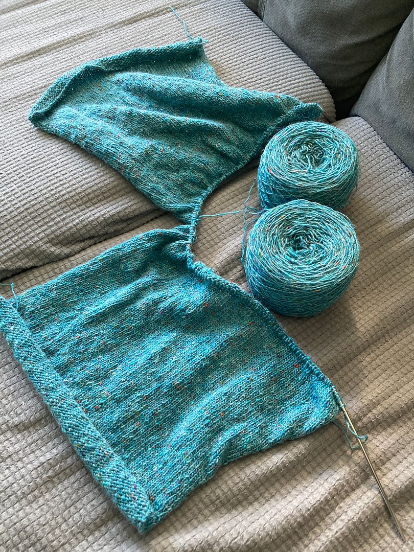The pattern called for these elongated raglan sleeve caps, and while I get it, these blocked sleeves are much too long for me. I’m going to have to rip out the sleeve caps and redo them with normal raglan decreases, because I am not ripping the whole thing out to make the body of the sleeve shorter. Will be doing the math on that this afternoon.