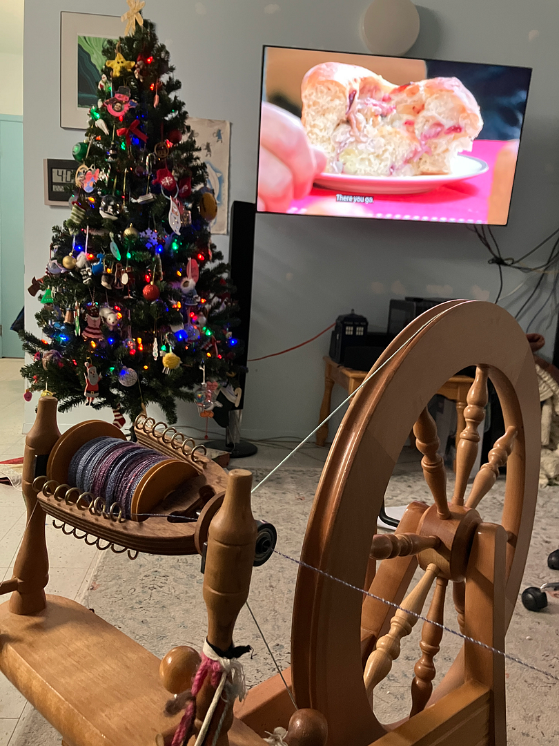 I have spun every day this month, except for the last couple of days, when I’ve been preoccupied with writing some end-of-year posts. I’ve also gotten sucked into some video games, both myself and with the kids, and magically I’ve been able to play board games again! Jared and and I finally took the time to learn a couple thematic worker placement games we’ve owned for a while but just haven’t had the wherewithal to try. They’re both really fun: “Robin Hood and his Merry Men” we’ve had for a long time (above), and “Through Ice and Snow” we kickstarted years ago but only just received (below). The latter is very respectfully Nunavut-centered, being about the expeditions through the Northwest Passage.