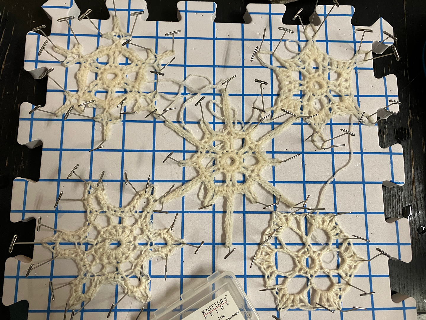 Randomly one afternoon, I was possessed of an urge to crochet some snowflakes. It was addictive! I have a whole book of 100 snowflake patterns; I’ll crochet all of them as I get the urge. And they can be decorations all winter!