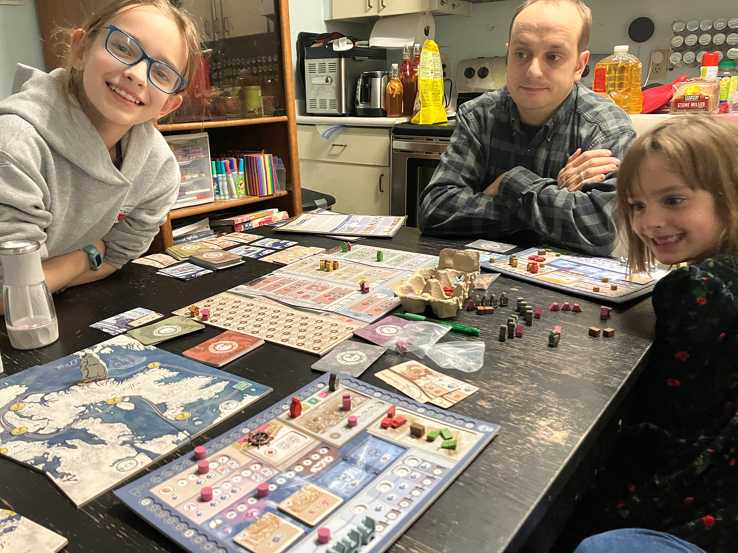 It’s inspired by the Franklin expedition, if you have heard of that! It’s fascinating. It’s a worker placement game, if you’re familiar, and quite challenging. My 11yo picked it up fine, but the other two are not interested yet.