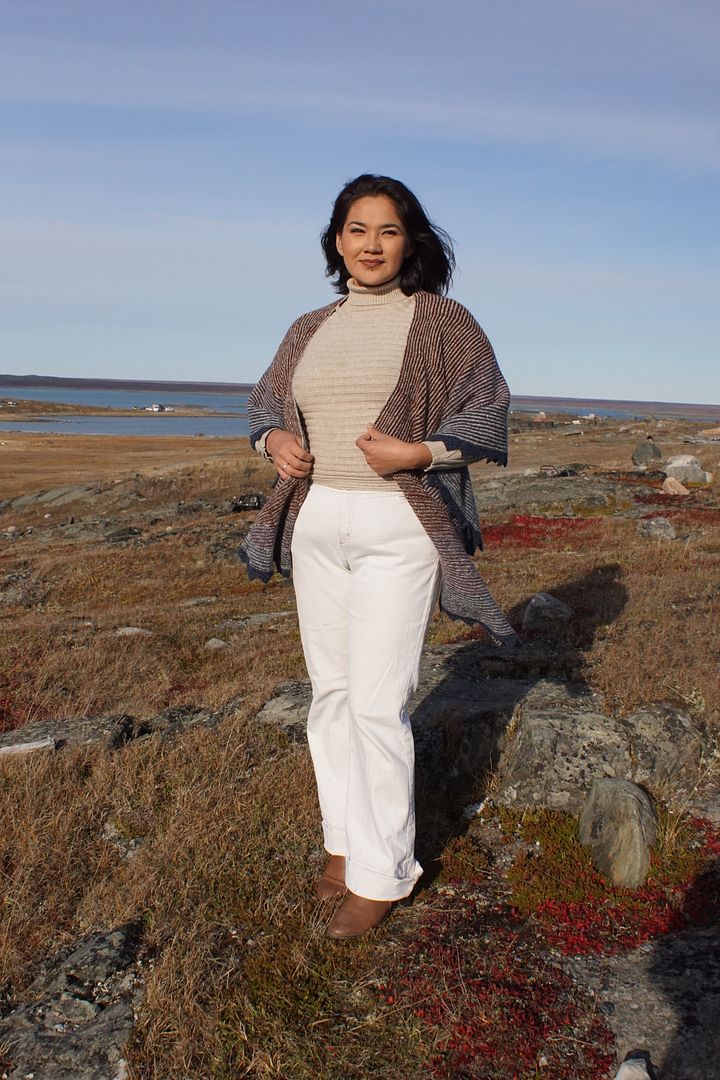 Thank you also to Akumalik Netser, who is so much fun to work with as a model! We took these pictures in early fall, during a sunny, windy day, just up the hill from my house on a spot overlooking the tundra.