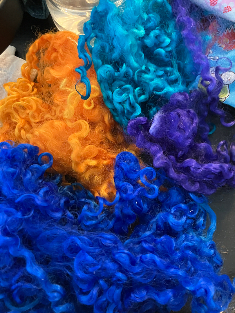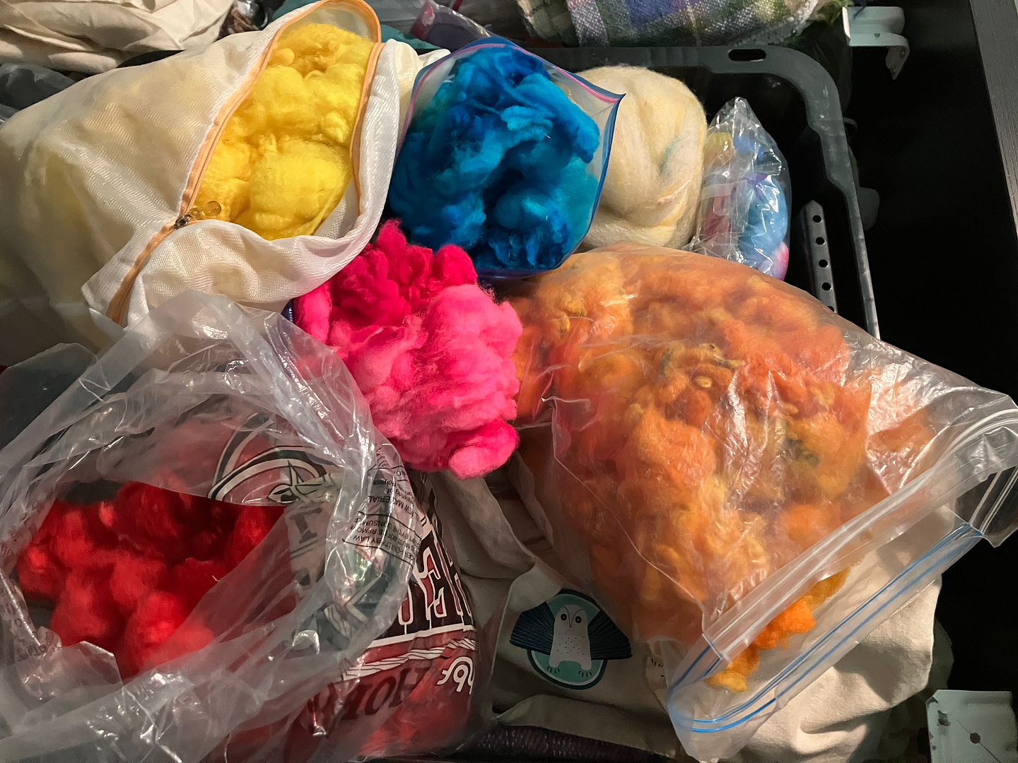 I also did a bunch of dyeing, transforming the fleeces into my stash into three blended future-projects: