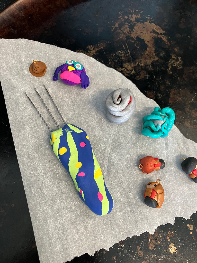 And I made an i-cord tool out of clay and knitting machine needles sent up by my mom!