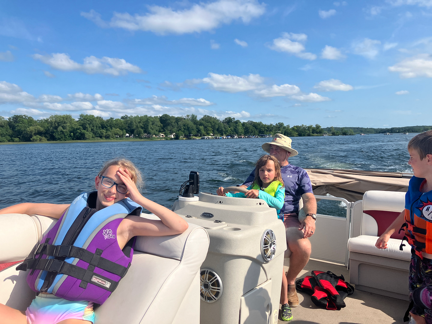 Dooner got to drive her cousins’ granddad’s pontoon boat.