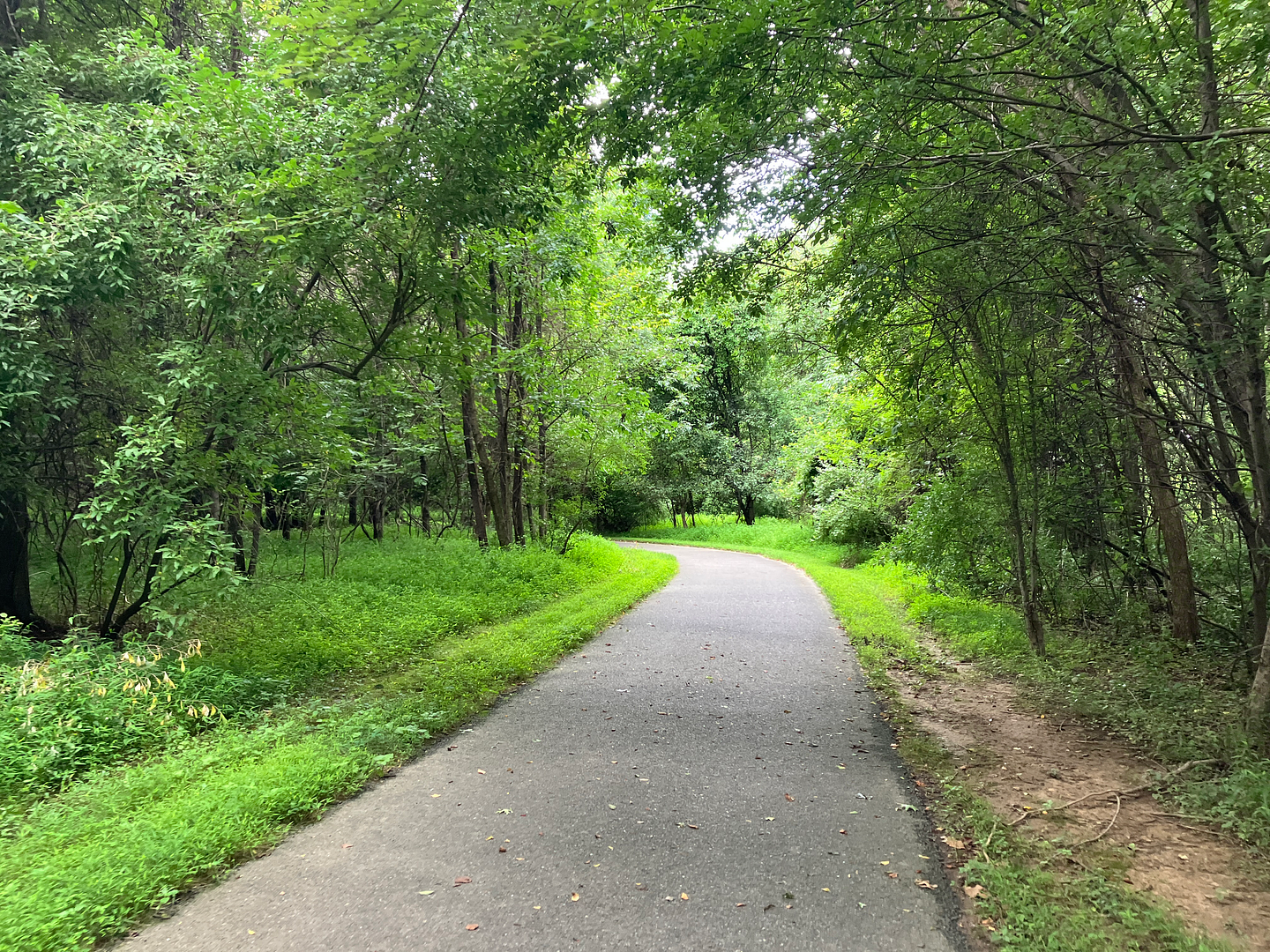 A quiet walk between neighborhoods in Olney, which has a lot more park space than I realized.