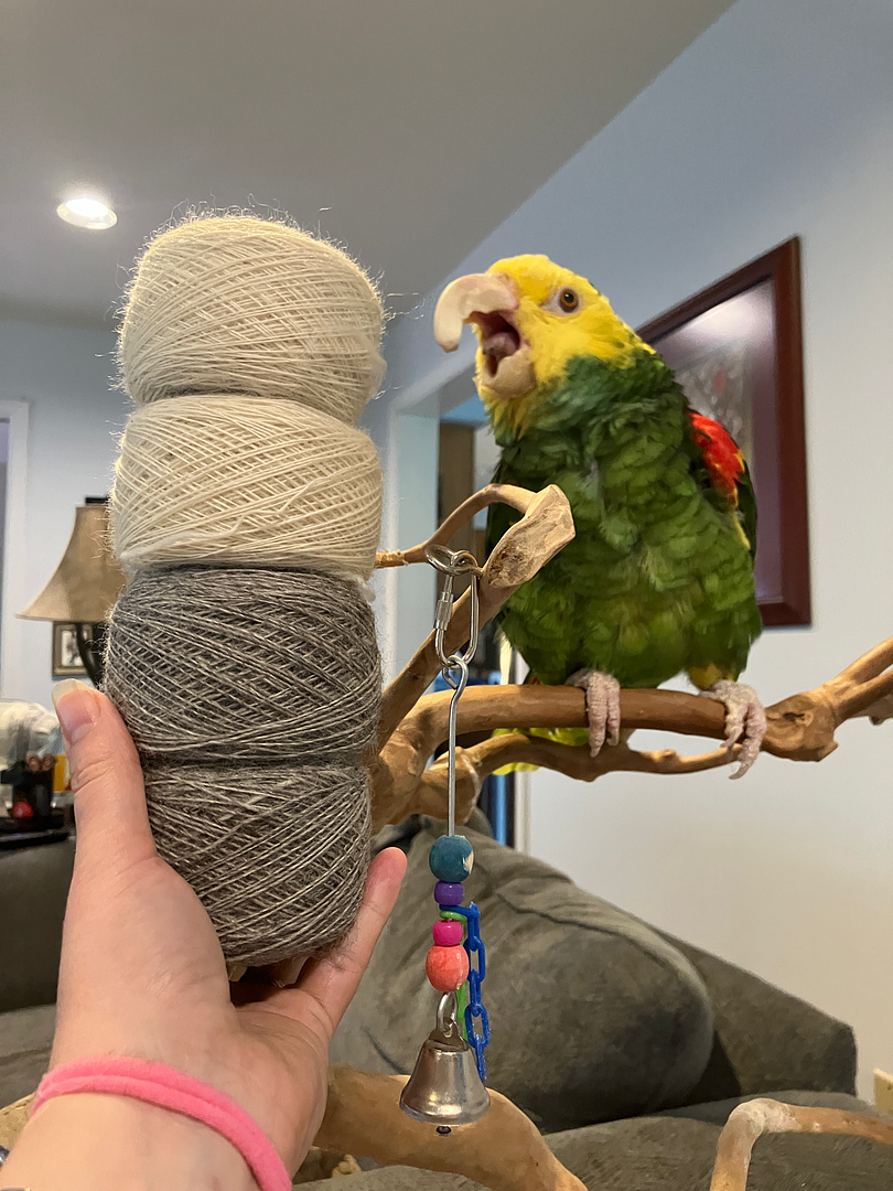 Through the first part of the tour, I spun a little bit every morning. Mom and I spun while watching the cycling on TV, hanging with her birds. I spun these two skeins on my CPW, which she kindly lets me keep at her house.