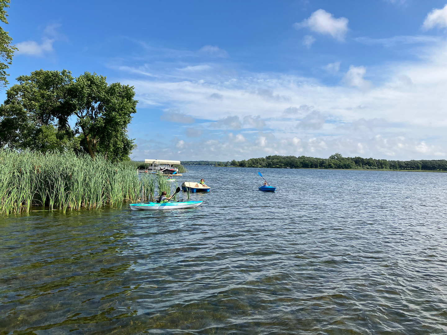 Next, we drove down to North Dakota where we met with Jared’s cousin and her family – same family we visited in Switzerland last year; they spend part of every year visiting family there. Highlight of this was a day at her in-law’s Minnesota lakehouse. This is me, my childhood best friend Tina, and Jared.
