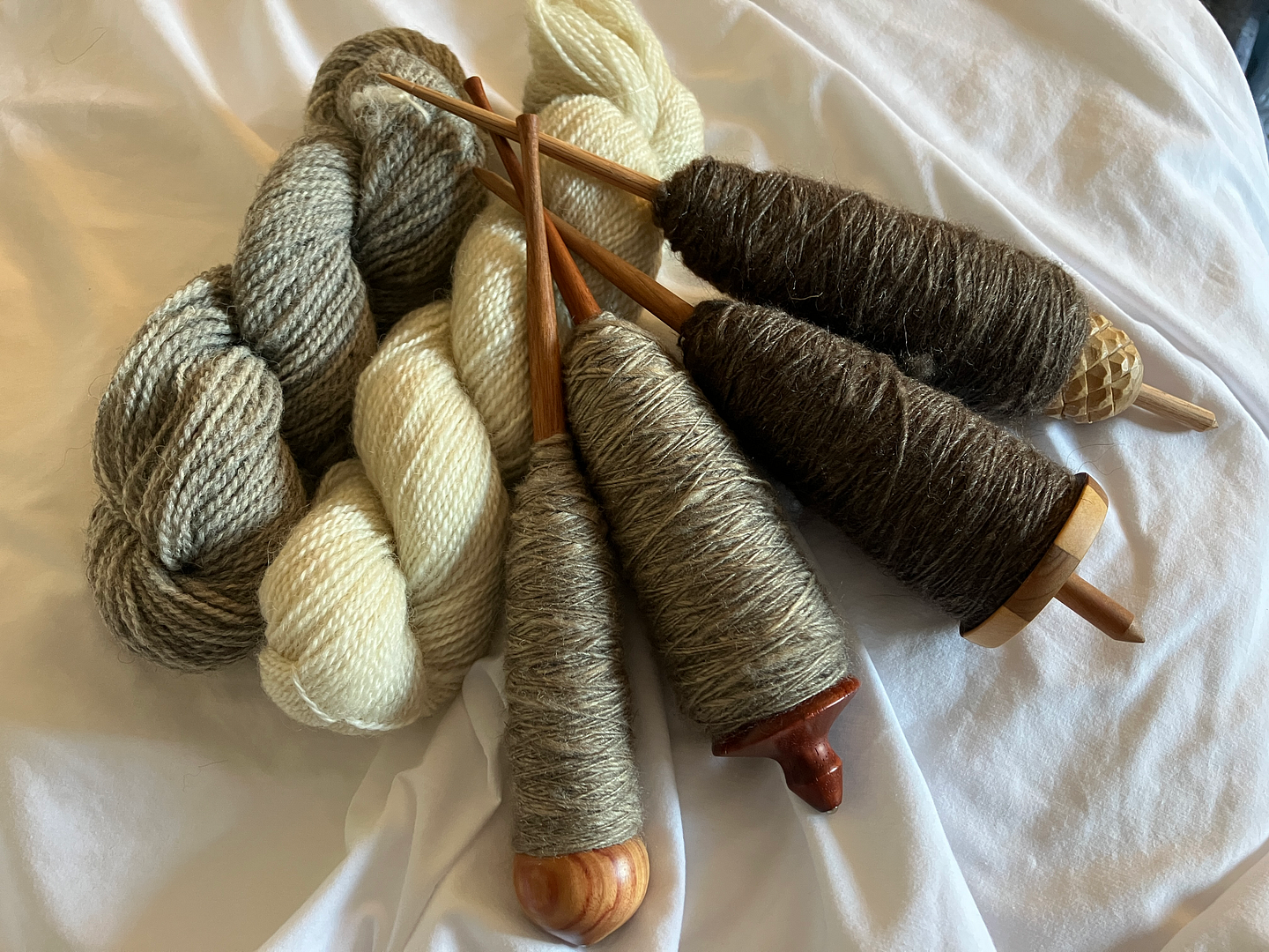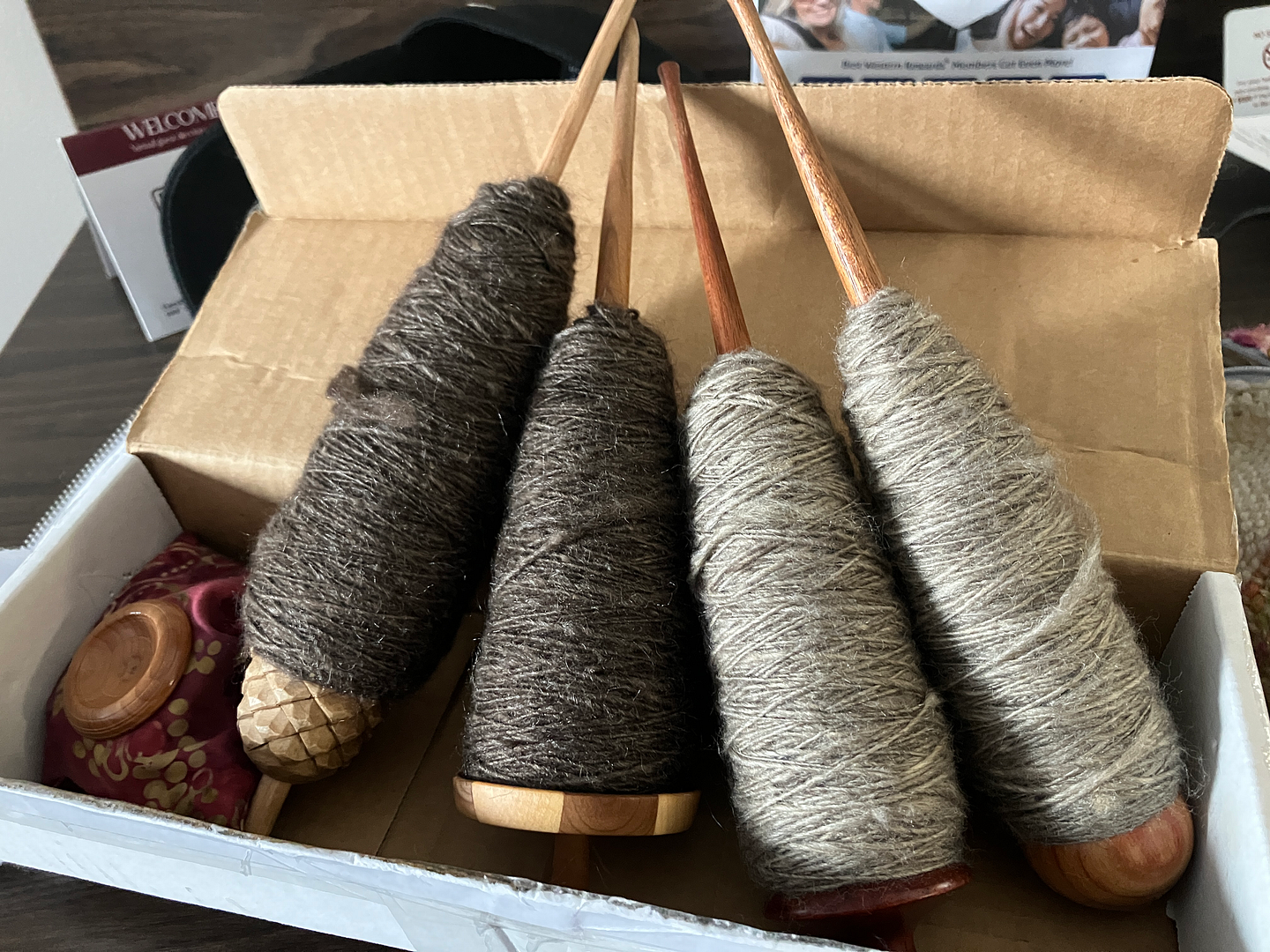 Spinning, first of all. The entirety of Tour de Fleece, and most of Tour de Fleece Femmes, occurred during our travels. I’ll cover my TDF/TDFF spinning in a couple of days, when we’re really finished, but here’s a sampling of what I did. All my spinning was for the Qiviut Blending Project, which has been ongoing since about 2022.