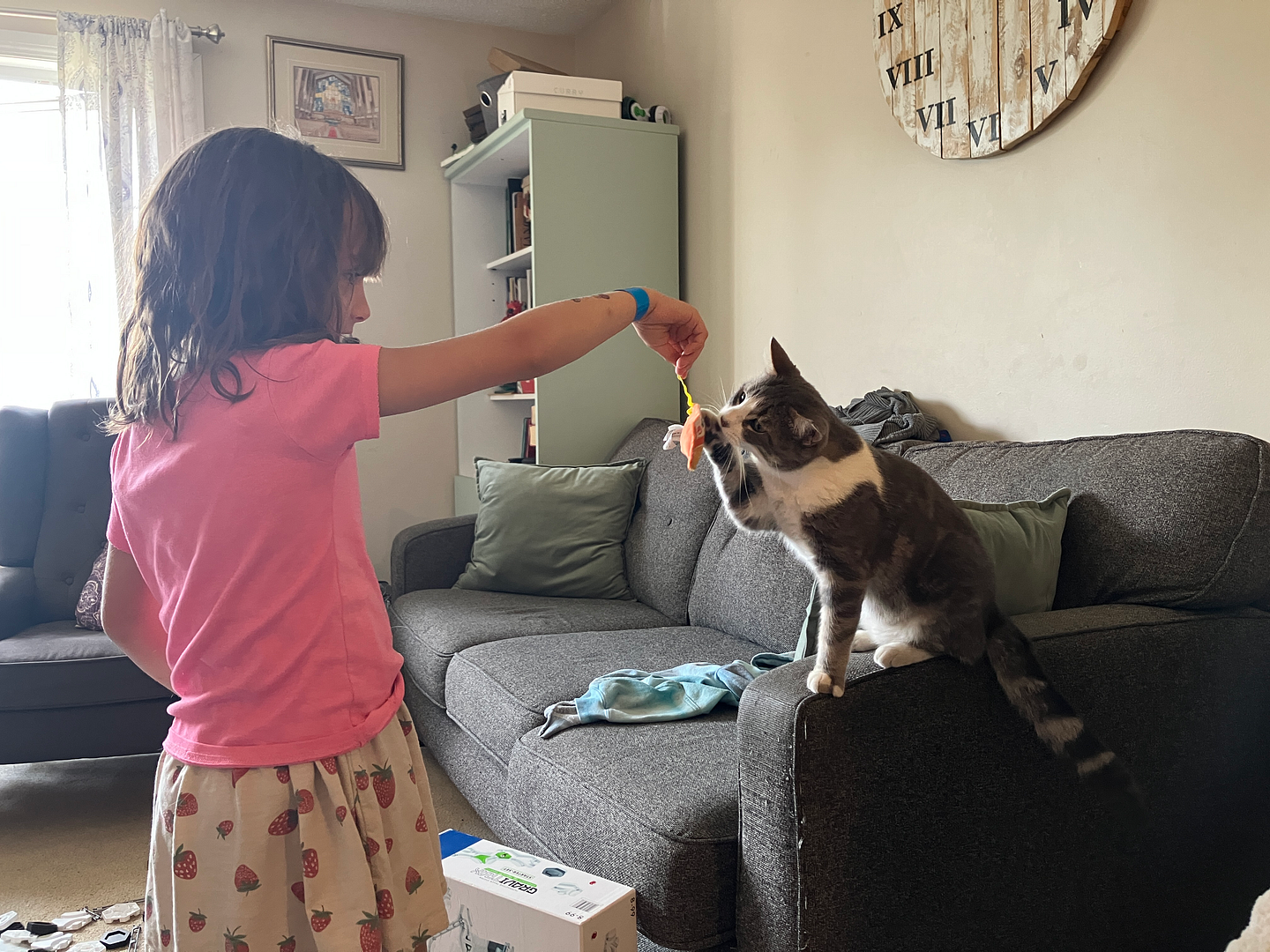I totally forgot to take any pictures of us with our dear friends in Brandon, but I managed to get pictures of all three of my kids with one of their cats.