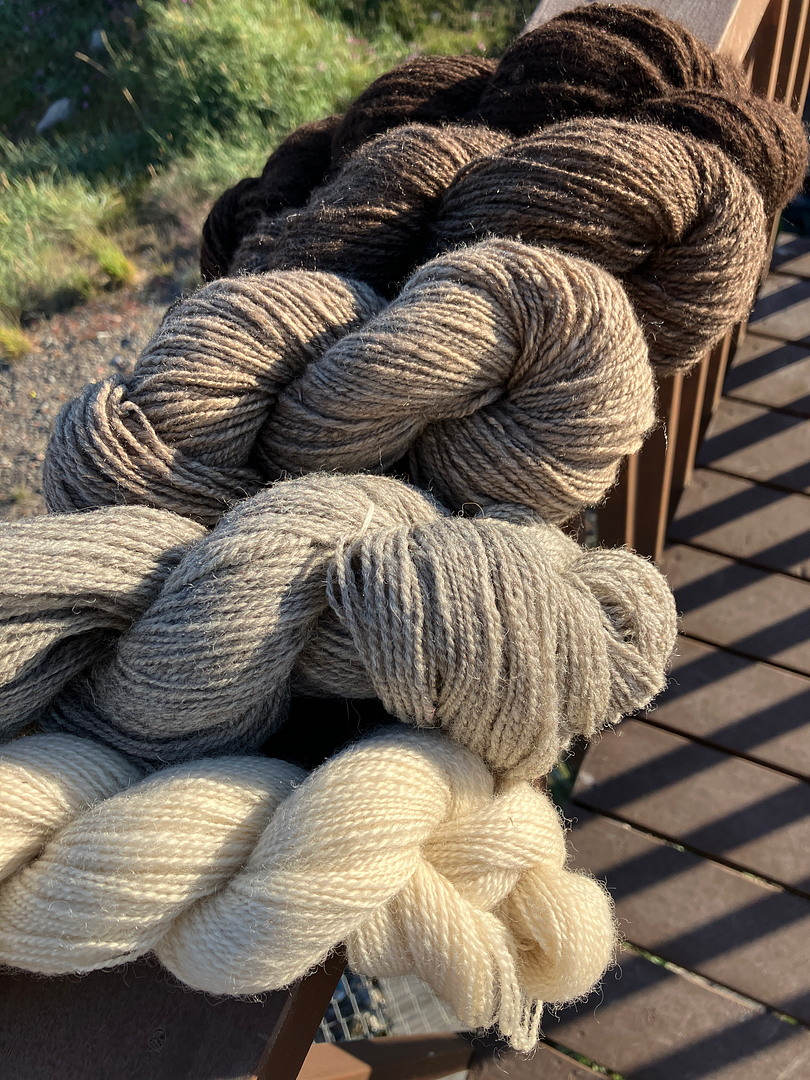 From left to right: Romney, Cheviot, Targhee/Muga/Qiviut, Icelandic/Pedencal/Qiviut, Icelandic.