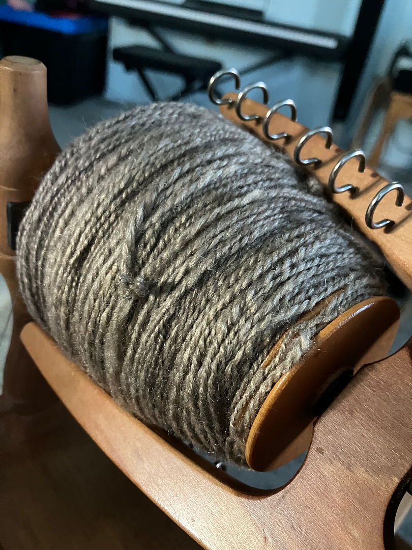 Our trip ended just a few days before the end of TDFF, with all my rolags spun and the four spindles I brought completely full. I could have plied them on my big drop spindle while traveling, and even brought it for this purpose, but when it came down to it, I didn’t want to. It would have taken a lot more work to finish the singles in time to do that step while traveling as well, and I just didn’t want to give my focus during travel for that. Instead, the last two days of the tour as we adjusted to being home again, I plied them on my Ashford Traditional.