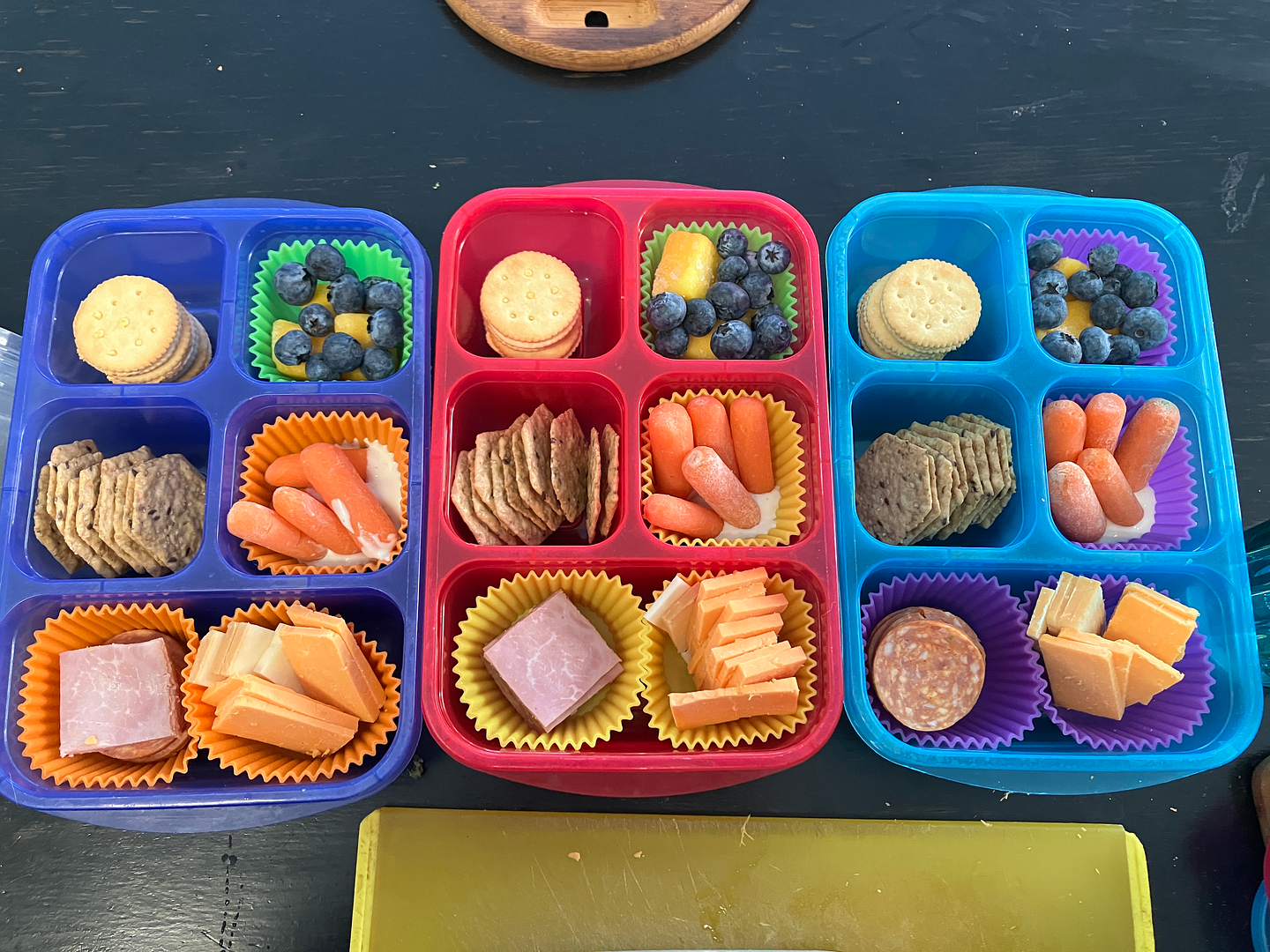 Thursday: DIY lunchables, mini ritz crackers, baby carrots, mango & blueberry.